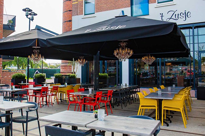 Een horeca parasol systeem is onmisbaar op jouw heerlijke horeca terras. Met een parasol ben je voorzien van schaduwrijke plekken voor de gasten én het zorgt voor herkenbaarheid waardoor je horeca terras er meteen tussenuit springt!